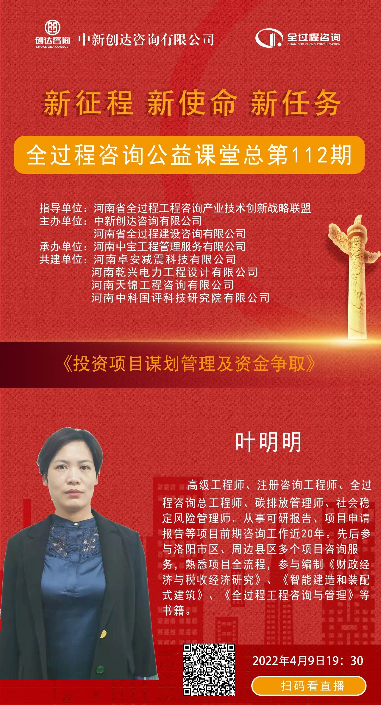 全过程工程咨询公益课堂 | ​第112期:投资项目谋划管理及资金争取