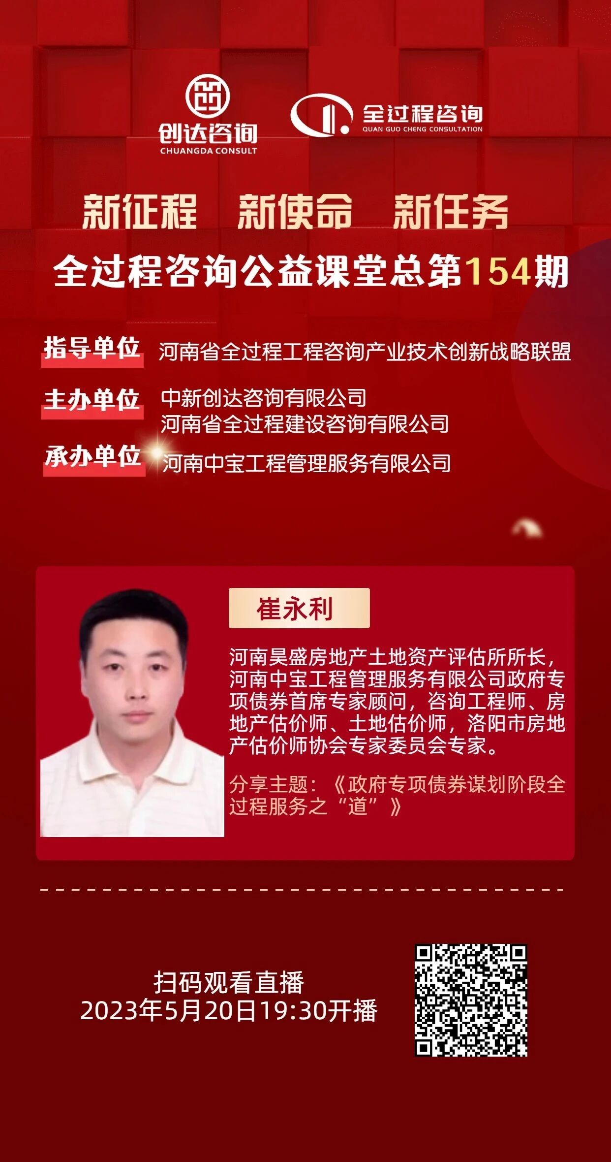 【直播预告】全过程工程咨询公益课堂第154期:政府专项债券谋划阶段全过程服务之“道”