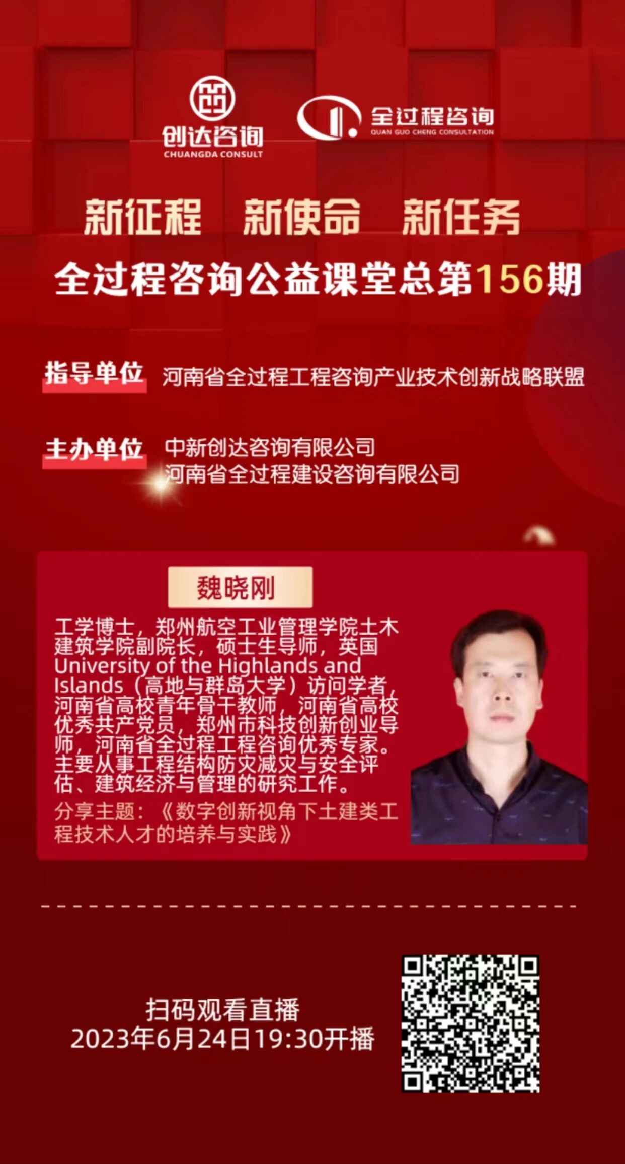 【直播预告】全过程工程咨询公益课堂第156期:数字创新视角下土建类工程技术人才的培养与实践