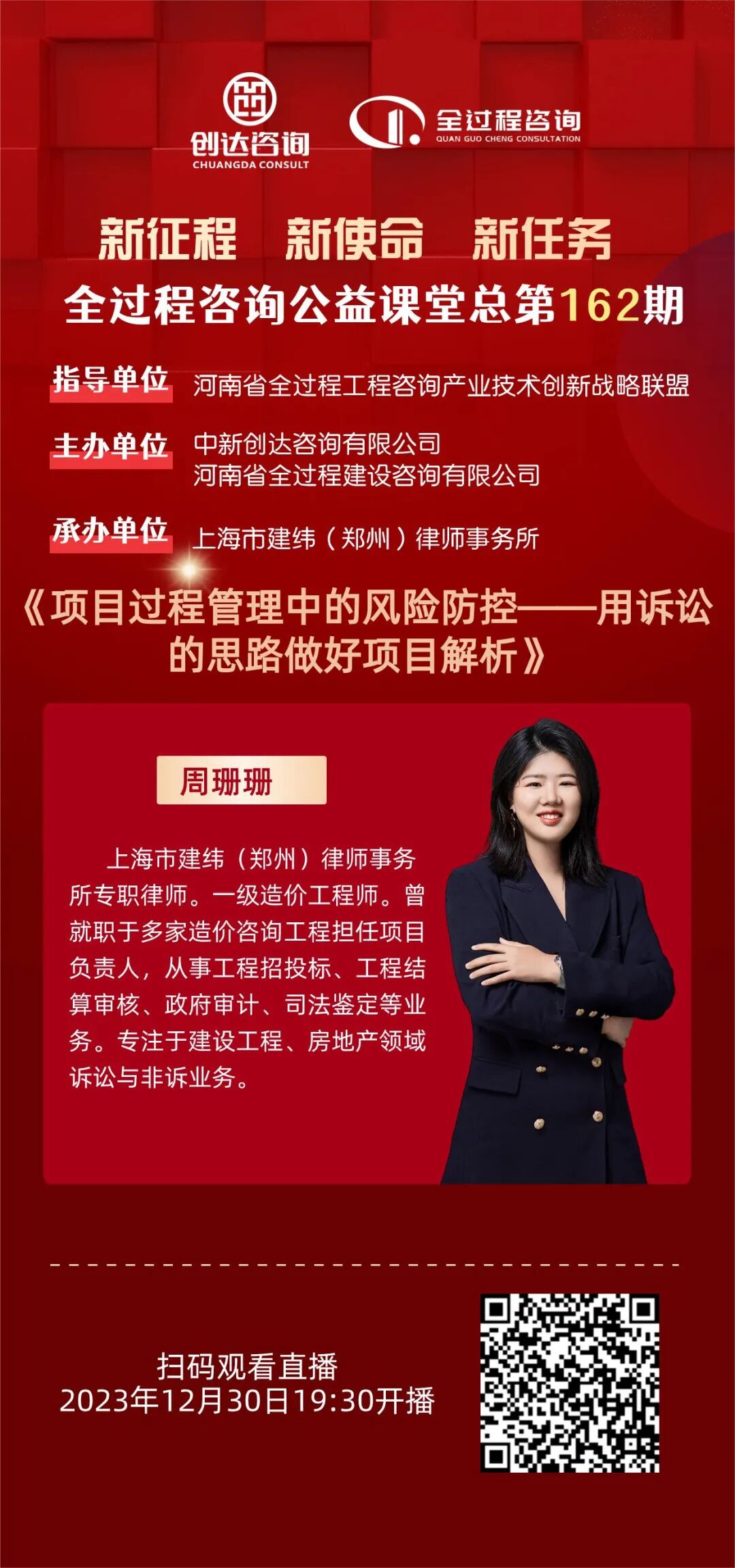 【直播预告】全过程工程咨询公益课堂第162期:《项目过程管理中的风险防控——用诉讼的思路做好项目解析》