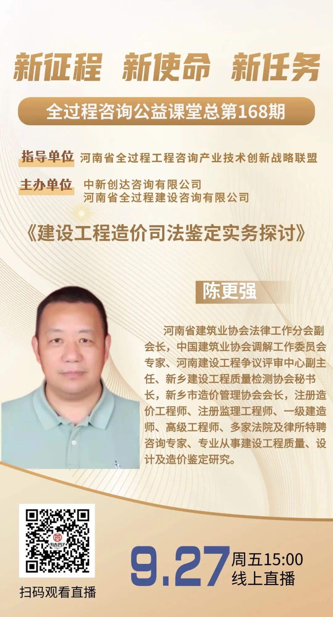 【直播预告】全过程工程咨询公益课堂第168期:《建设工程造价司法鉴定实务探讨》