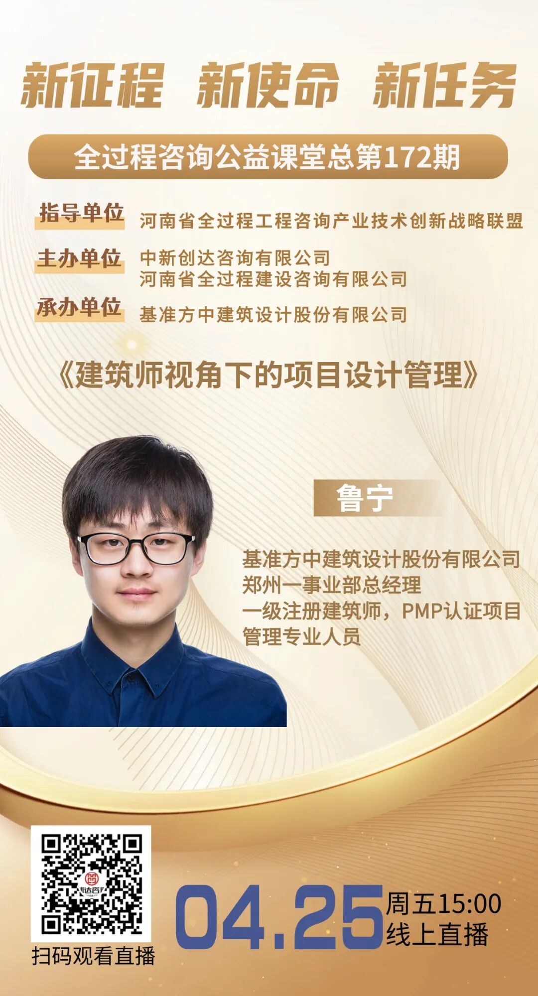 【直播预告】全过程工程咨询公益课堂第172期:《建筑师视角下的项目设计管理》