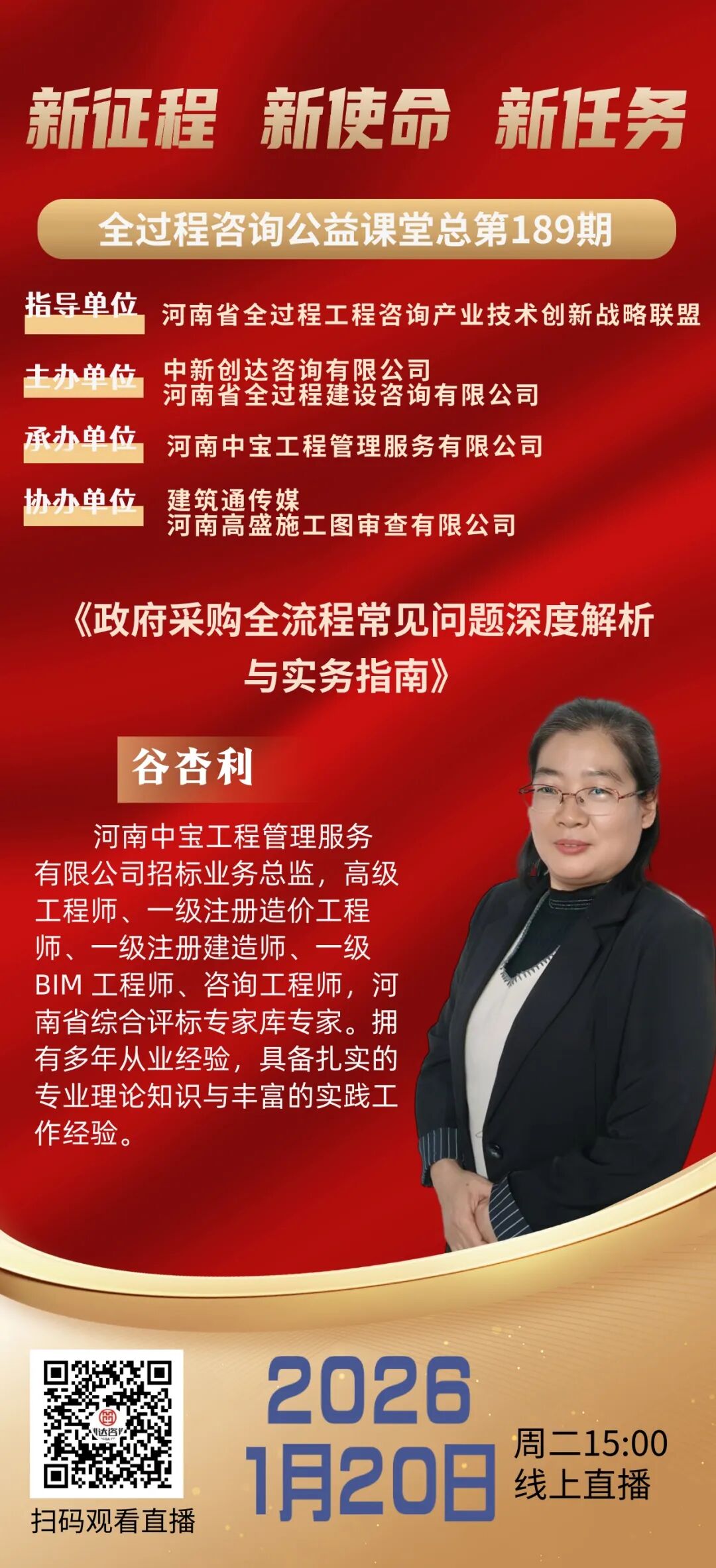 【直播预告】全过程工程咨询公益课堂第189期:《政府采购全流程常见问题深度解析与实务指南》