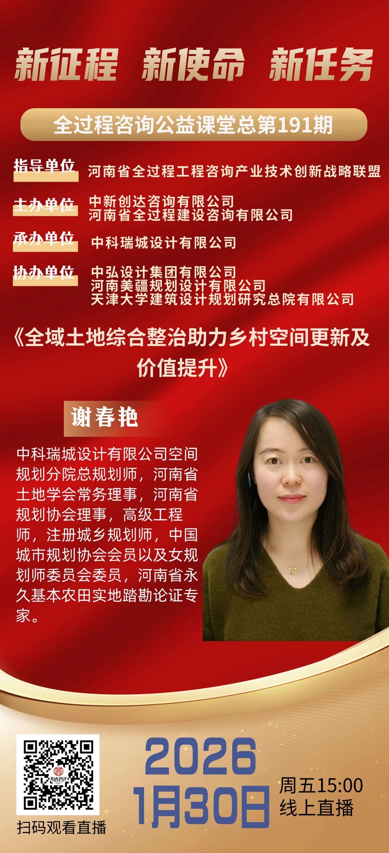 【直播预告】全过程工程咨询公益课堂第191期:《全域土地综合整治助力乡村空间更新及价值提升》