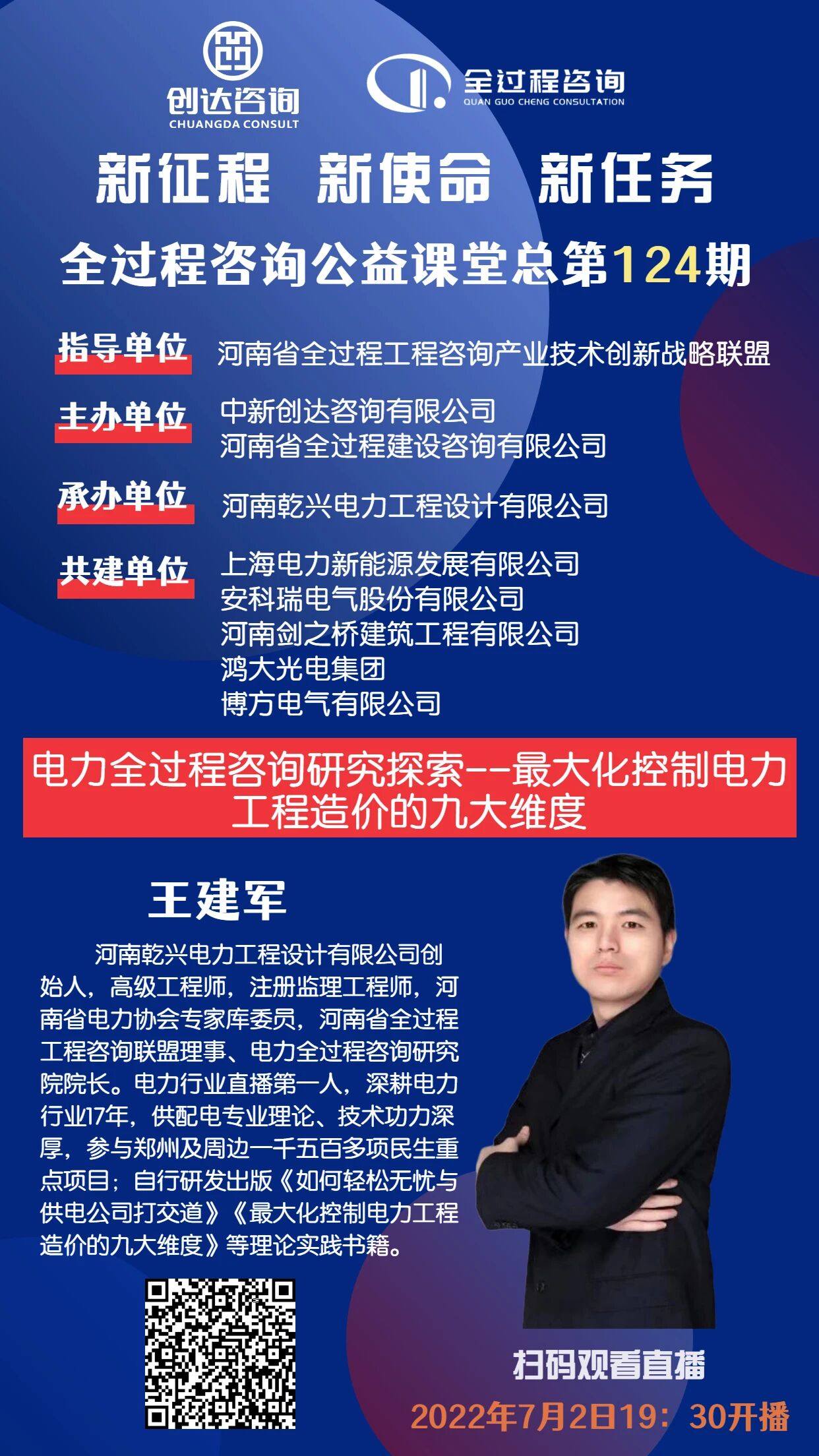 全过程工程咨询公益课堂 | ​第124期:《电力全过程咨询研究探索--最大化控制电力工程造价的九大维度》