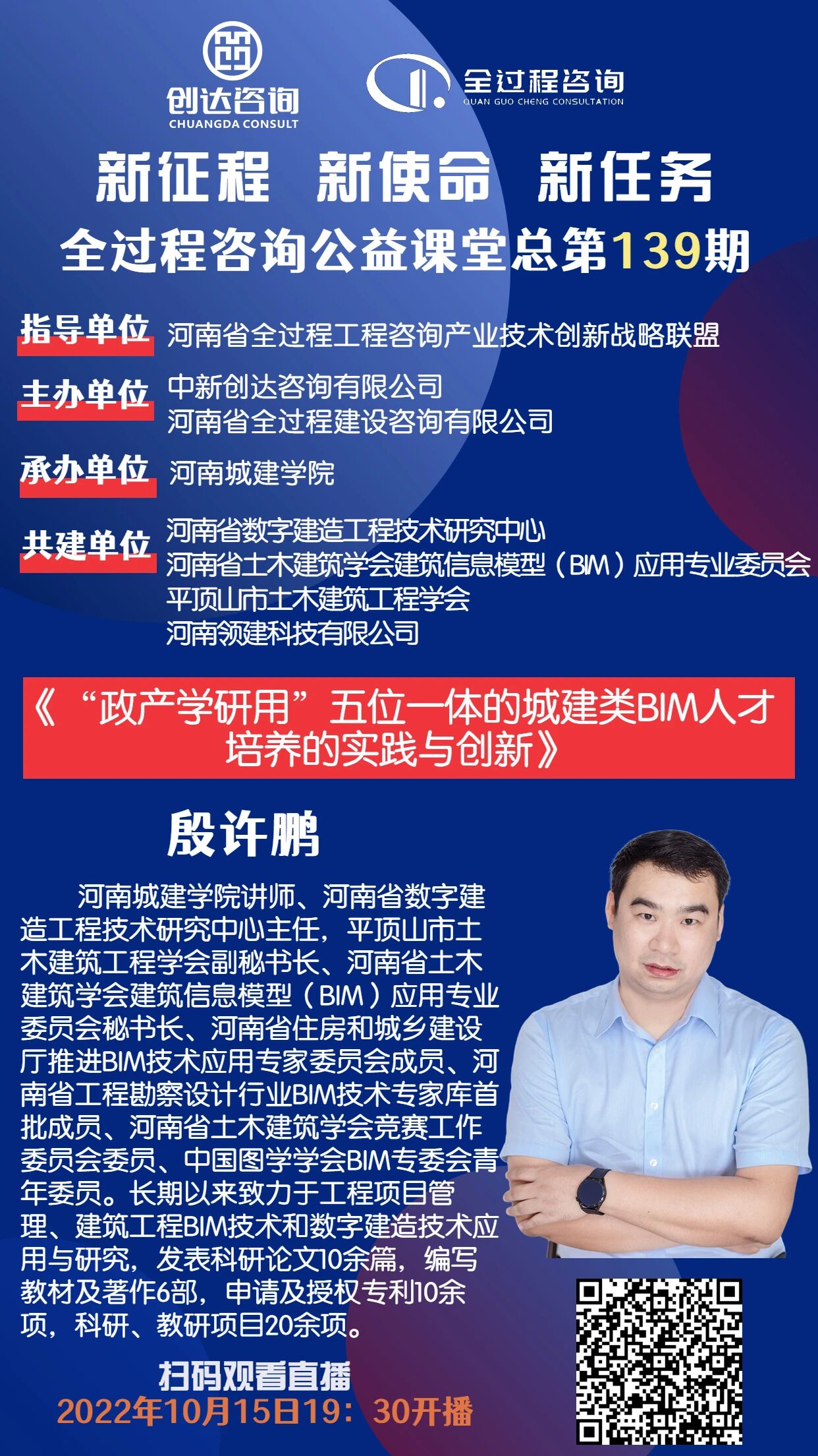 全过程工程咨询公益课堂 | ​第139期:《“政产学研用”五位一体的城建类BIM人才培养的实践与创新》