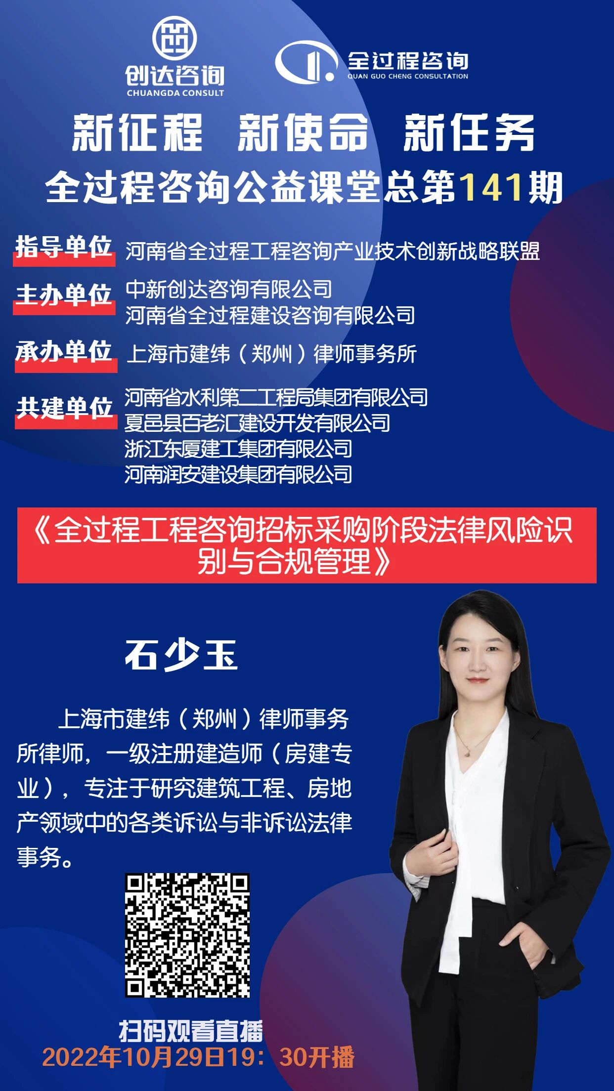 全过程工程咨询公益课堂 | ​第141期:《全过程工程咨询招标采购阶段法律风险识别与合规管理》
