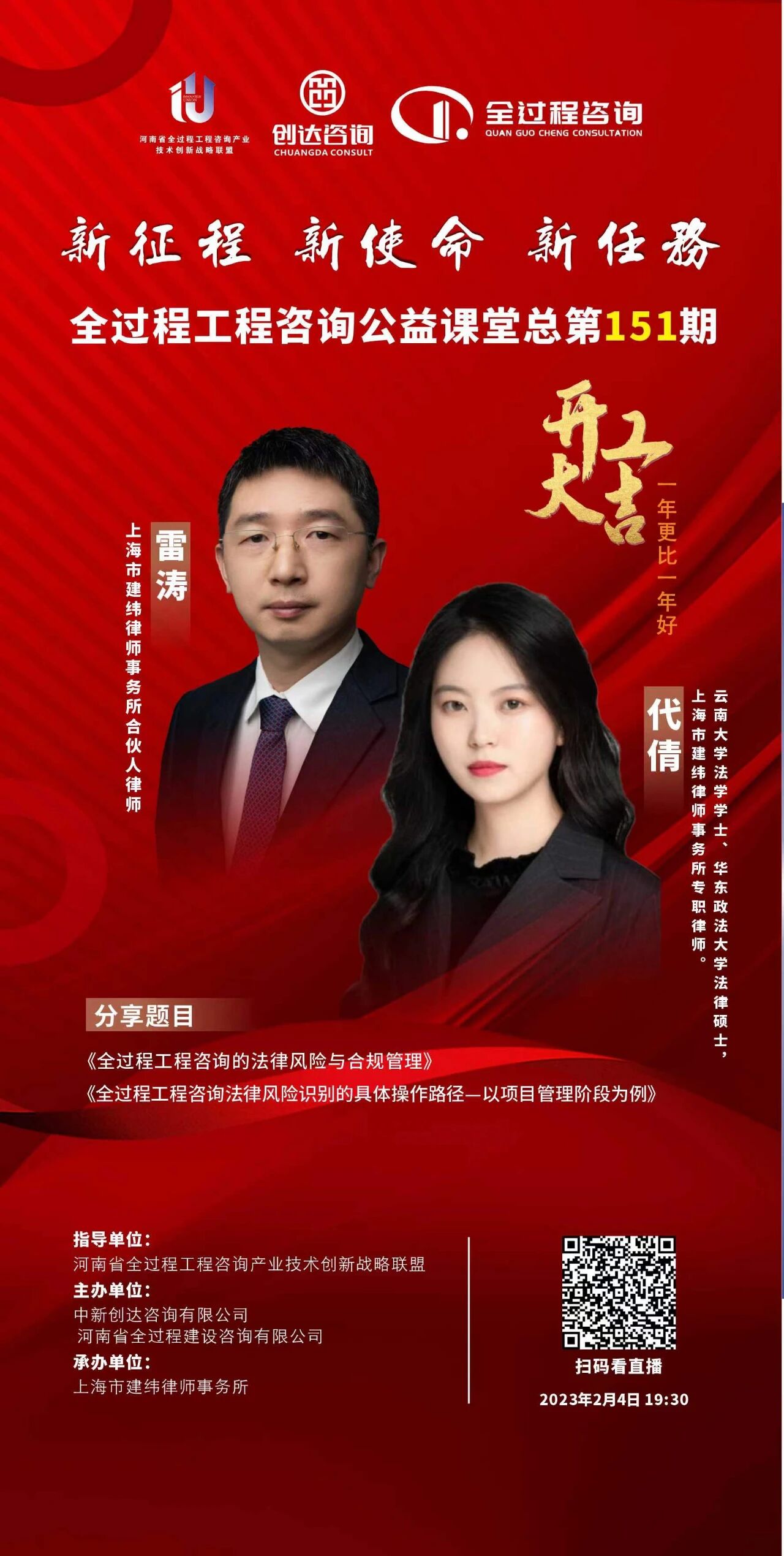 全过程工程咨询公益课堂 | ​第151期:《全过程工程咨询的法律风险与合规管理》《全过程工程咨询法律风险识别的具体操作路径---以项目管理阶段为例》