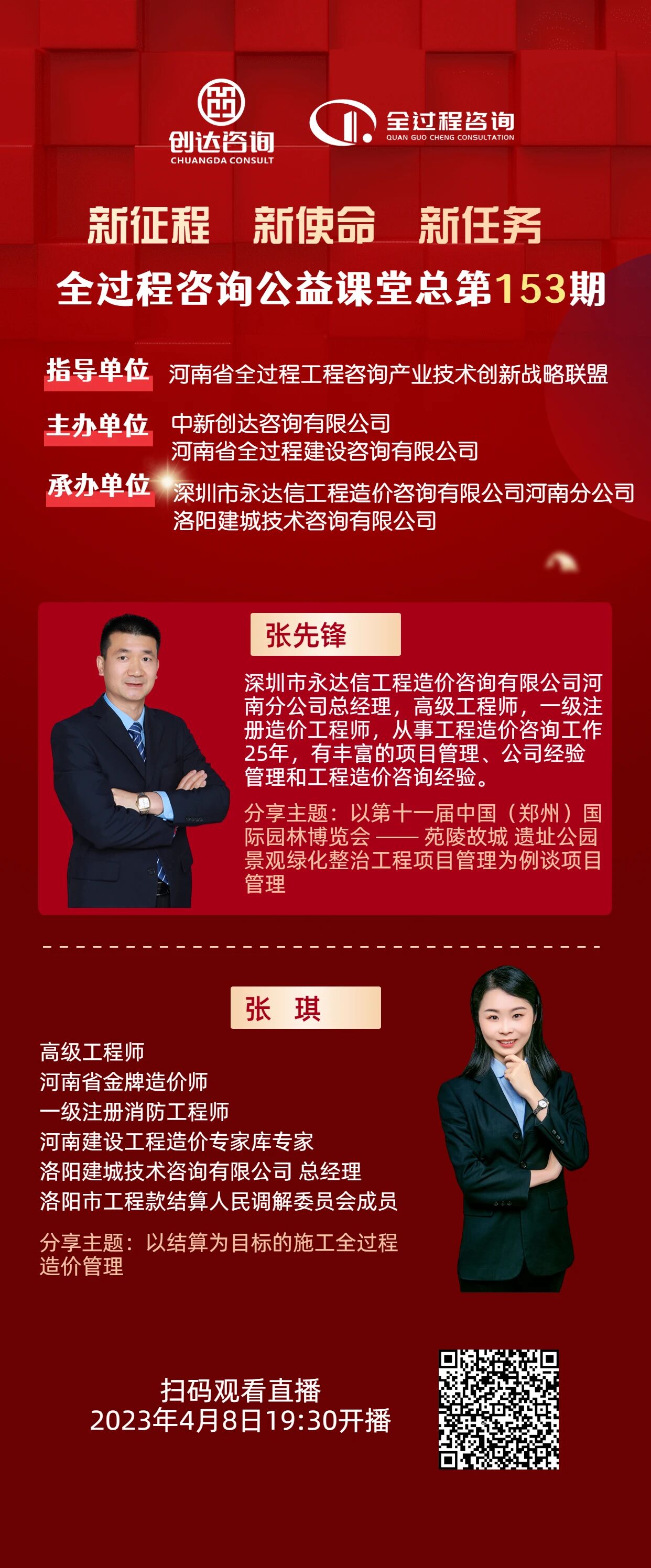 全过程工程咨询公益课堂 | ​第153期:《以第十一届中国(郑州)国际园林博览会 —— 苑陵故城 遗址公园景观绿化整治工程项目管理为例谈项目管理》《以结算为目标的施工全过程造价管理》