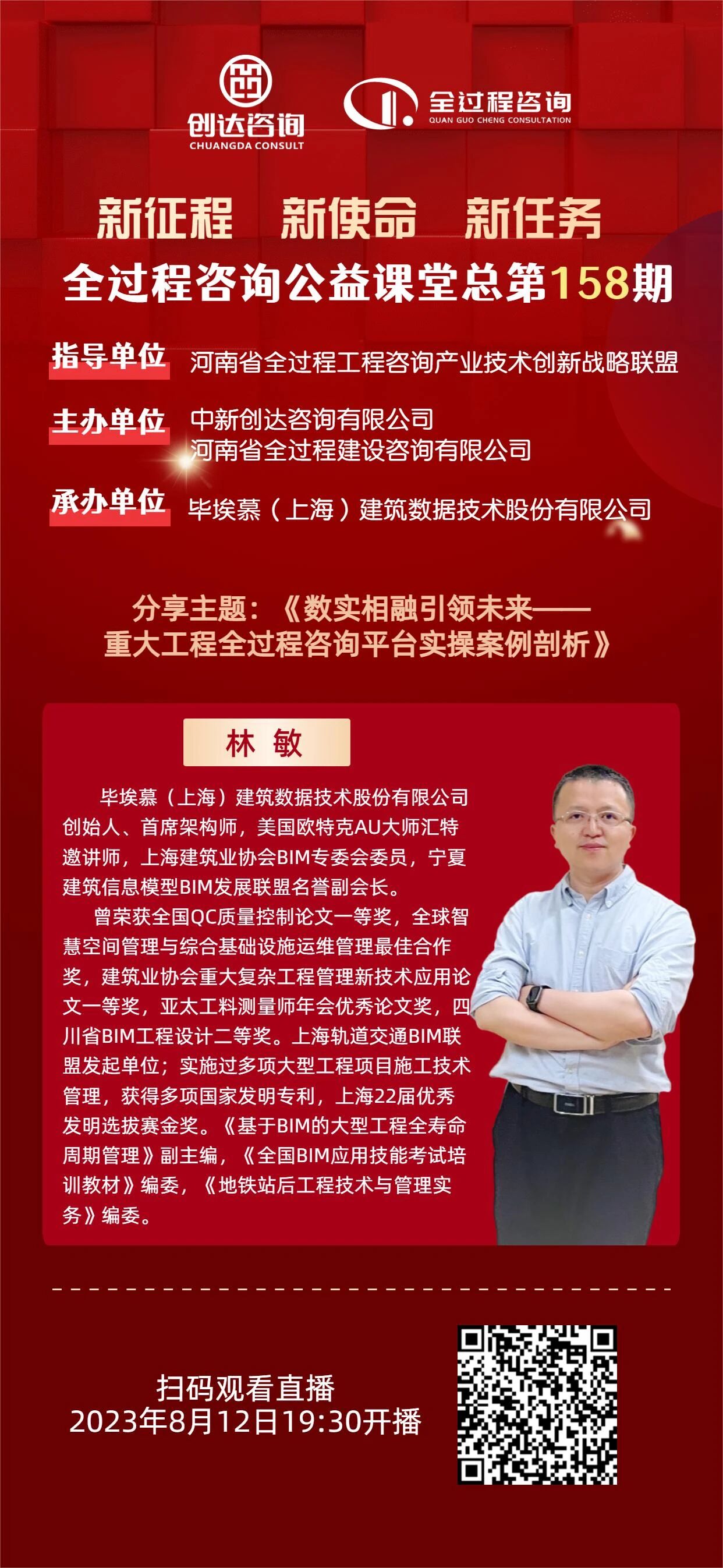 【直播预告】全过程工程咨询公益课堂第158期:重大工程全过程咨询平台实操案例剖析