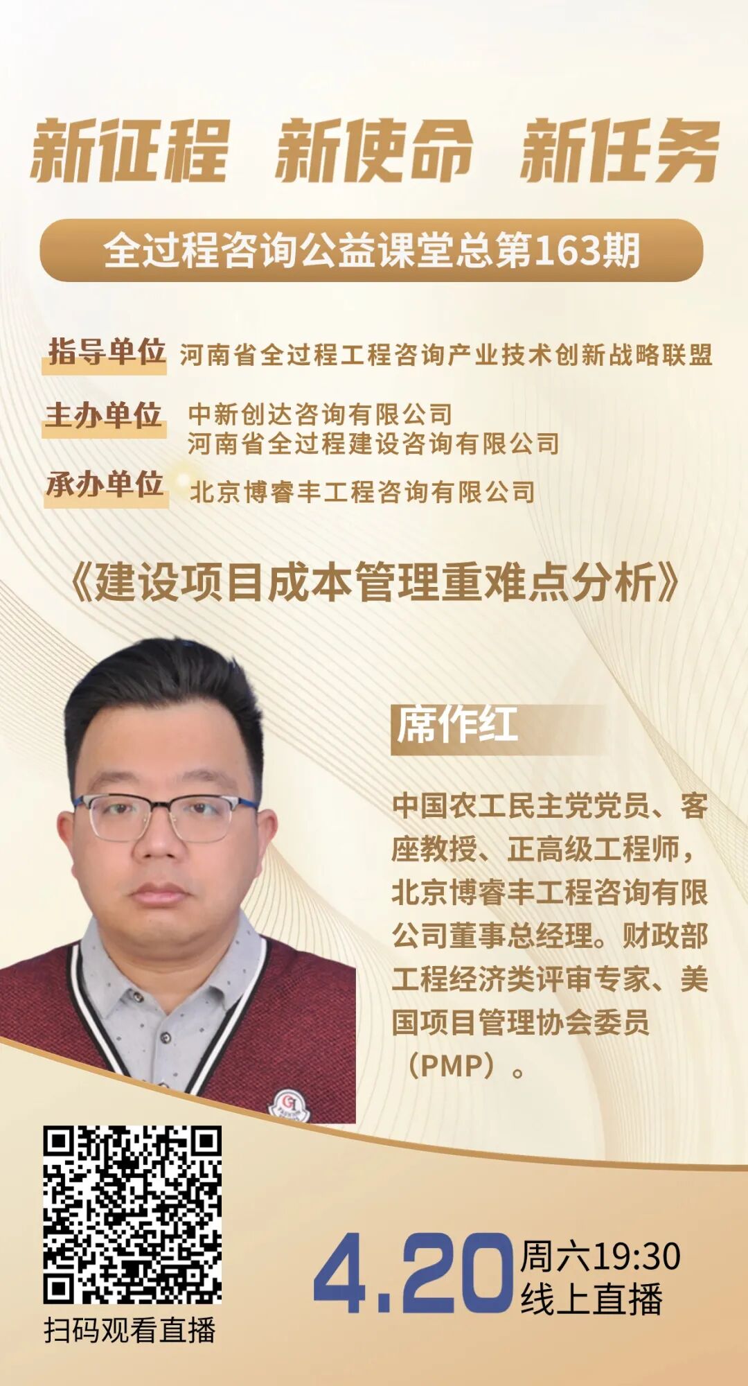 【直播预告】全过程工程咨询公益课堂第163期:《建设项目成本管理重难点分析》