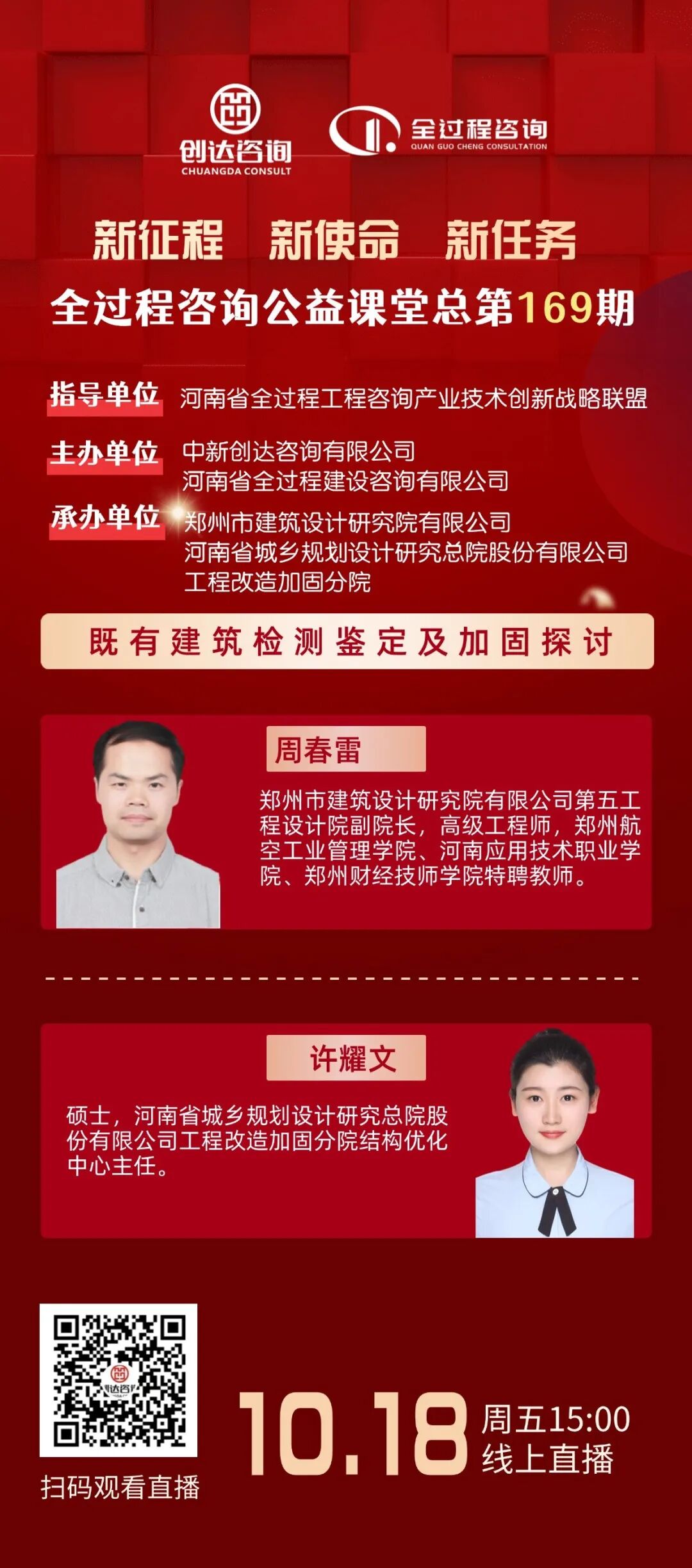 【直播预告】全过程工程咨询公益课堂第169期:《既有建筑检测鉴定及加固探讨》