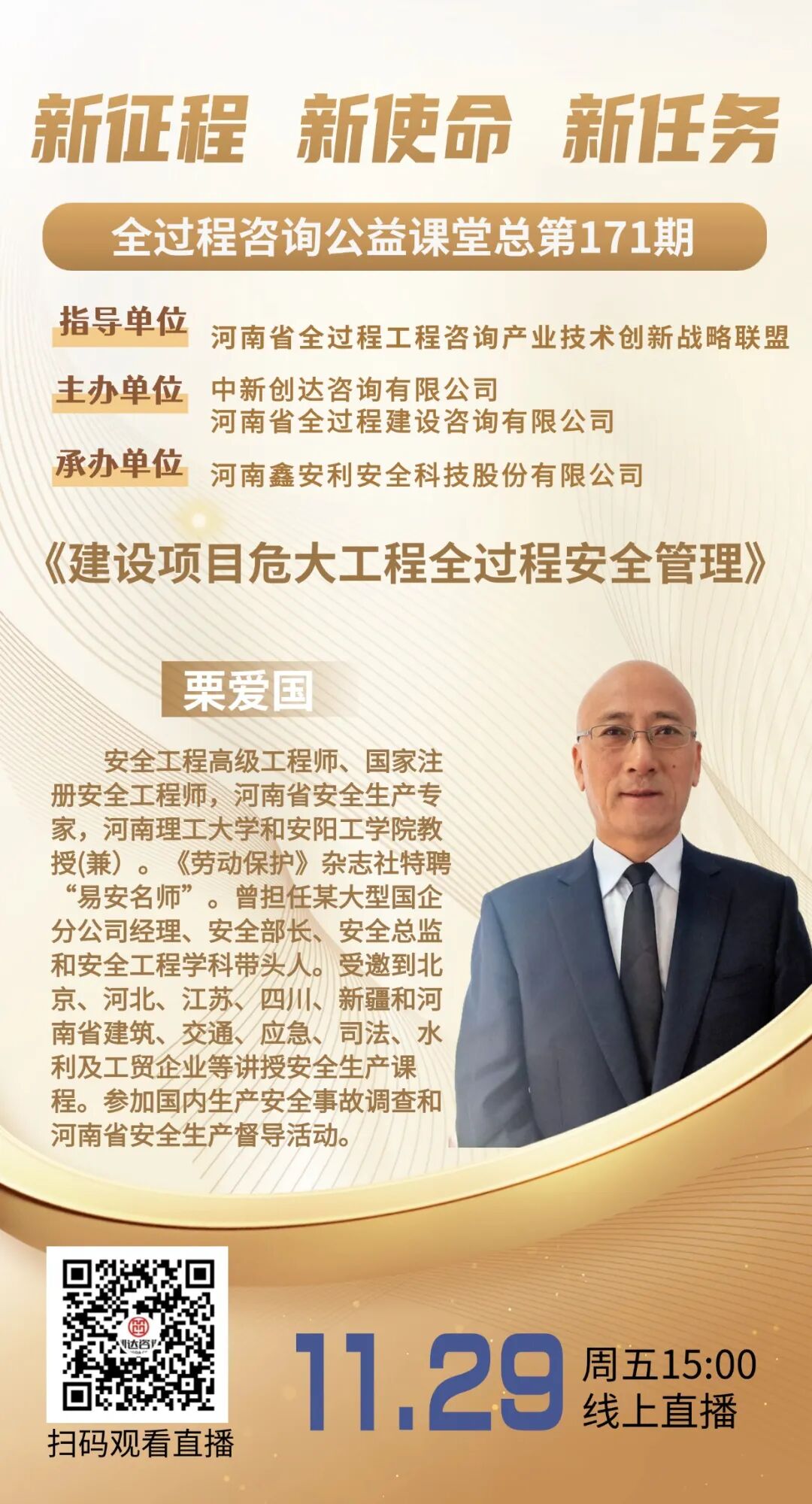 【直播预告】全过程工程咨询公益课堂第171期:《建设项目危大工程全过程安全管理》