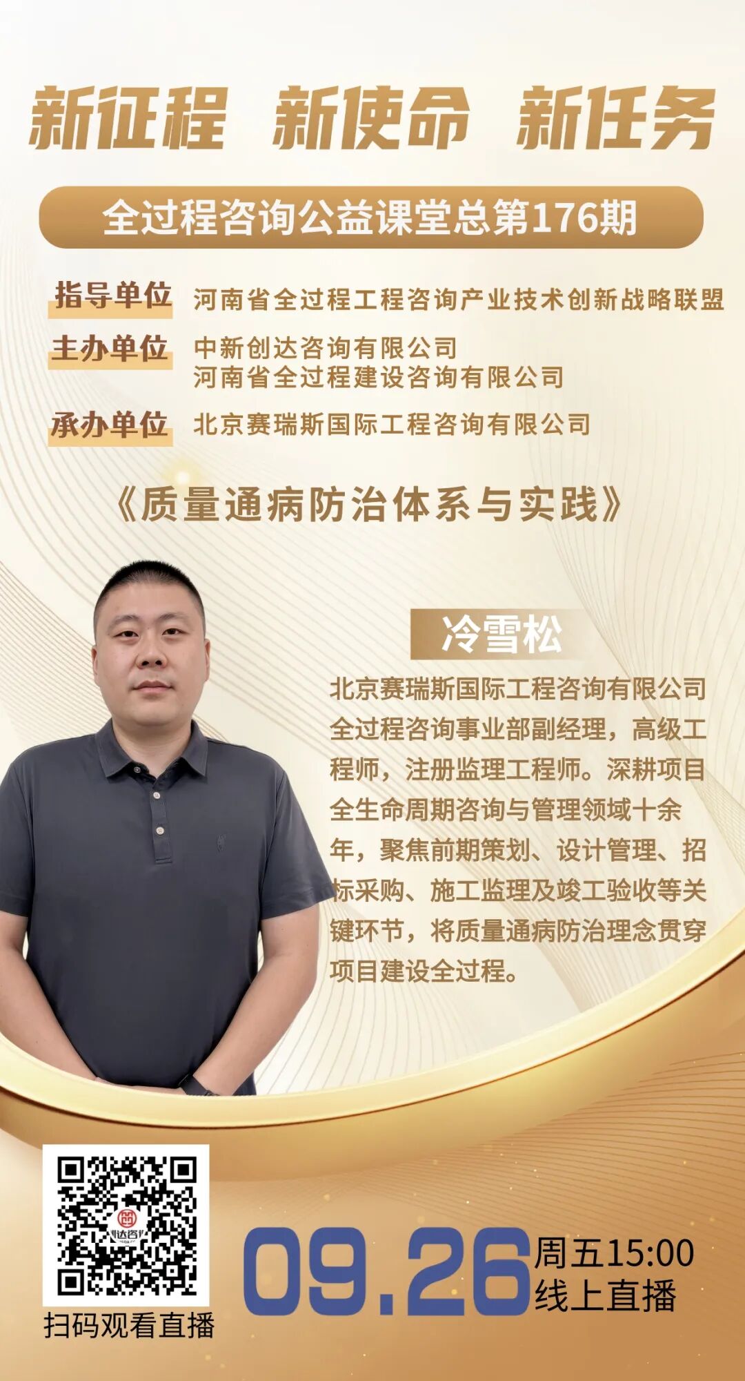 【直播预告】全过程工程咨询公益课堂第176期:《质量通病防治体系与实践》