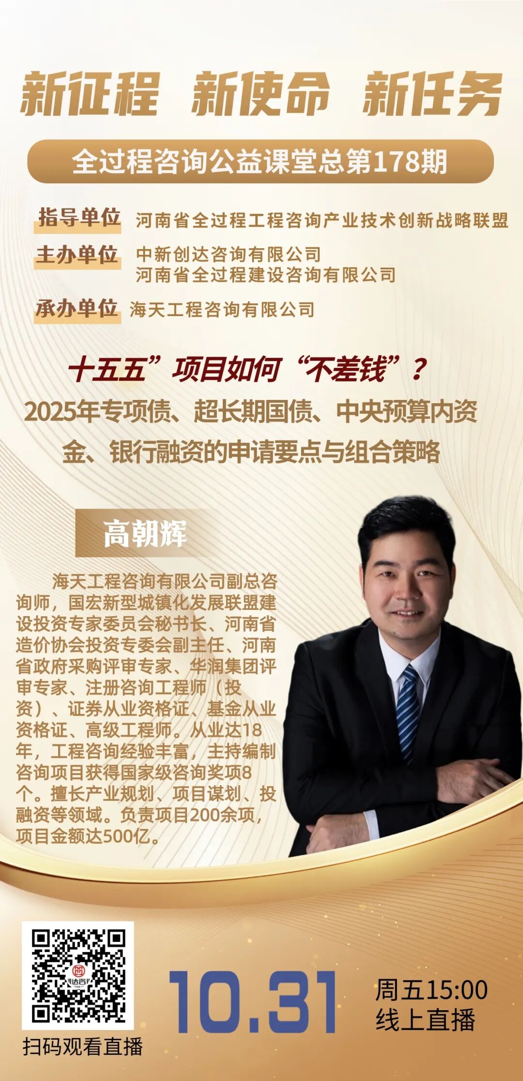 【直播预告】全过程工程咨询公益课堂第178期:《“十五五”项目如何“不差钱”?》